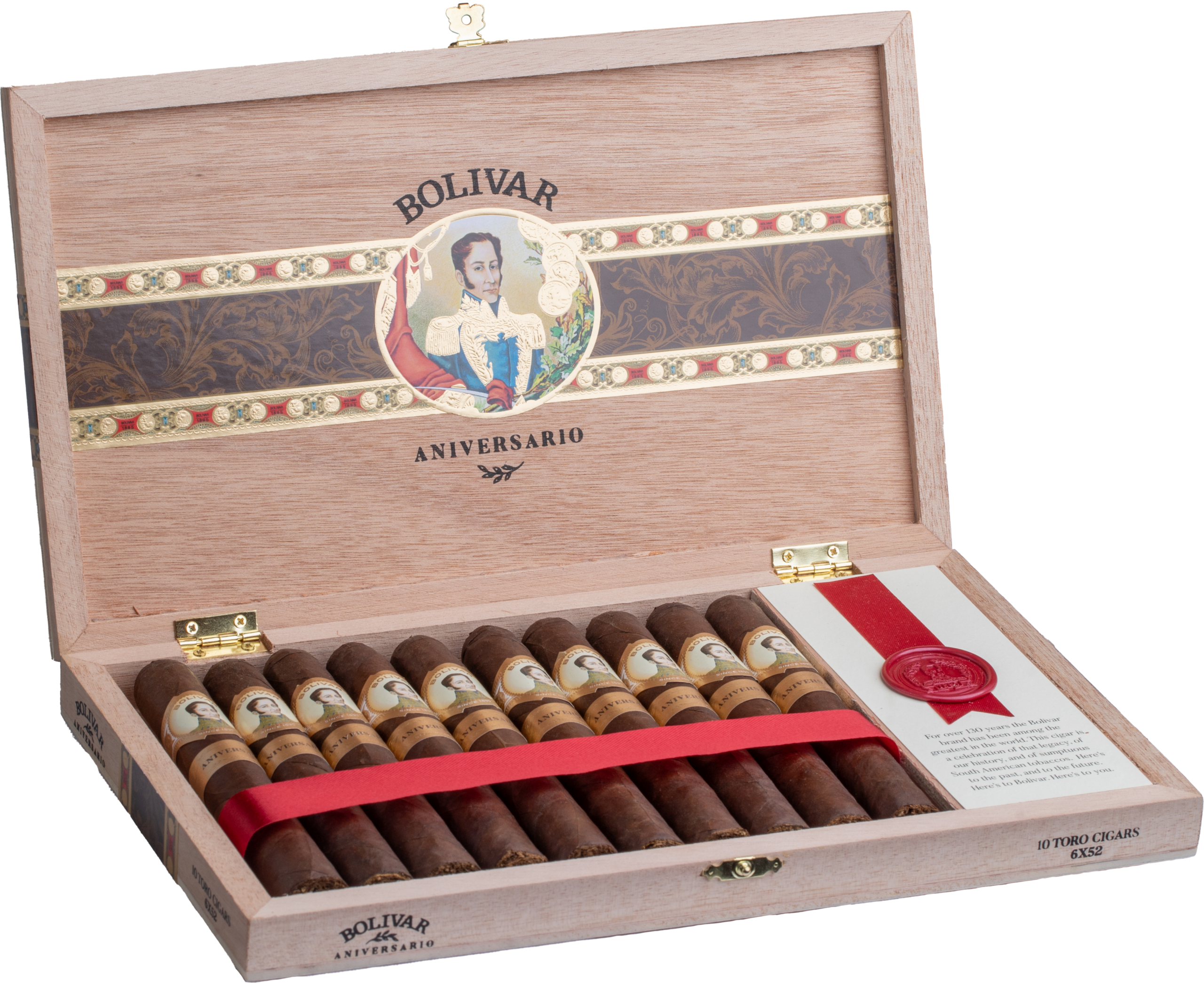 The Bolivar Aniversario has an MSRP of $9.99 and is available only in one size, a 6 x 52 toro. It will be packaged in ten count boxes. General Cigar said in a press release the cigar will begin shipping in March 2026.