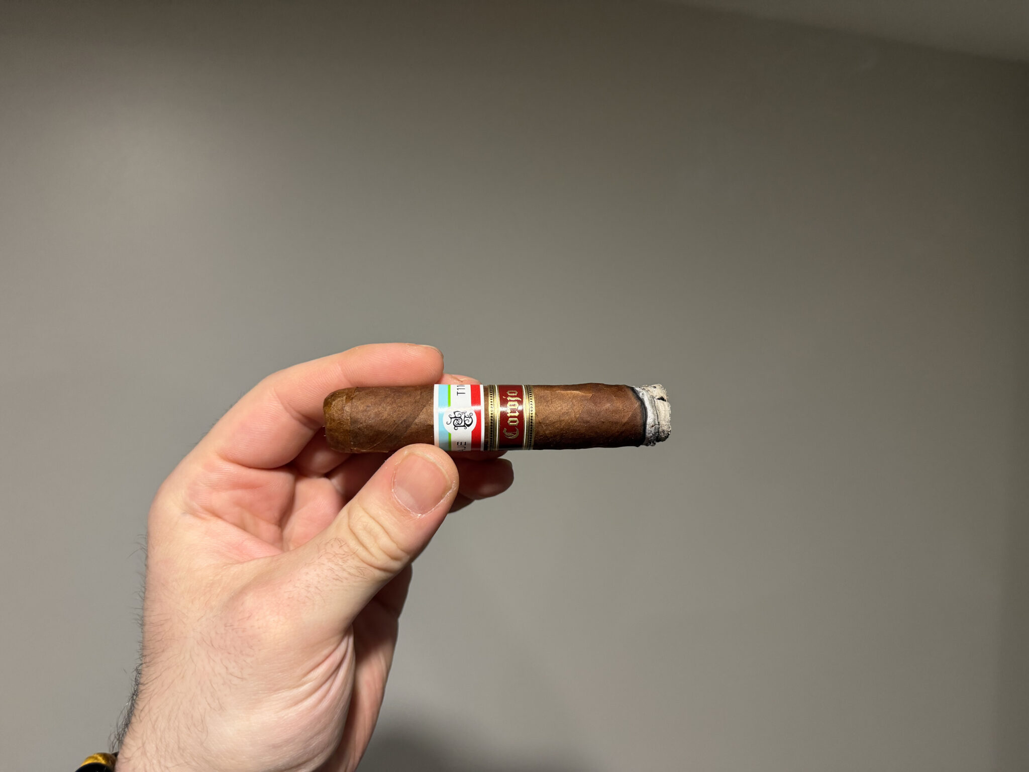 The T110 Corojo continues to burn very well, having burned very evenly with little to no issues or re-lights. It also has plenty of smoke production, which is typical for a Tatuaje in my experience. Even at rest, the cigar continues to smolder really well, but it’s not burning too hot either and stays just right. The spice is the primary note here, with leather and earth being secondary. Almost like a paprika, a cayenne pepper, mixed with a sense of fresh leather, like a brand-new leather belt, a good one from a leather store not that Chinese crap at Macy’s. Or even better, when you walk into a leather store and you smell all the fresh leather hit you in the nose it’s almost sweet and refined. There is also a hint of lemongrass in there just playing in the back riding out the finish.