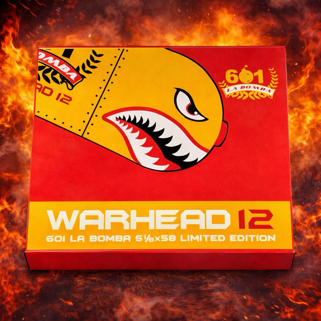 601 La Bomba Warhead 12 continues the Warhead series with a 6 1/8 x 58 box-pressed vitola, featuring a Broadleaf wrapper over Nicaraguan binder and filler. It will retail for $15 per cigar in 10-count boxes priced at $150 MSRP. The line remains known for bold profiles, unusual dimensions, and a presentation style that has made it one of Espinosa’s most anticipated yearly projects.