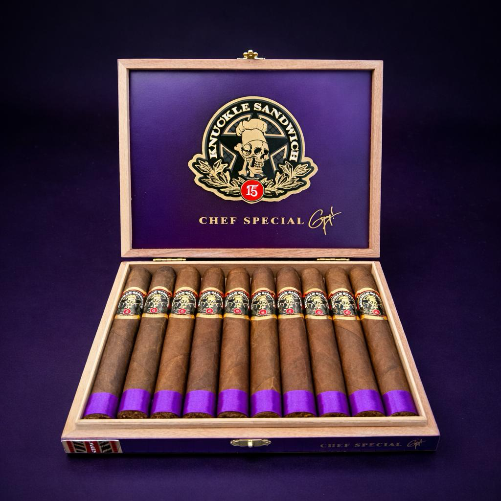 Knuckle Sandwich Chef Special 2026 marks the latest annual return in the Knuckle Sandwich portfolio. This year’s version uses a Mexican claro wrapper over Nicaraguan binder and fillers and comes in a 6 x 54 oval-pressed toro. It will retail for $16 per cigar, packaged in 10-count boxes with an MSRP of $160. As with prior Chef Special releases, the concept is to deliver a new annual expression while staying true to the core Knuckle Sandwich identity.