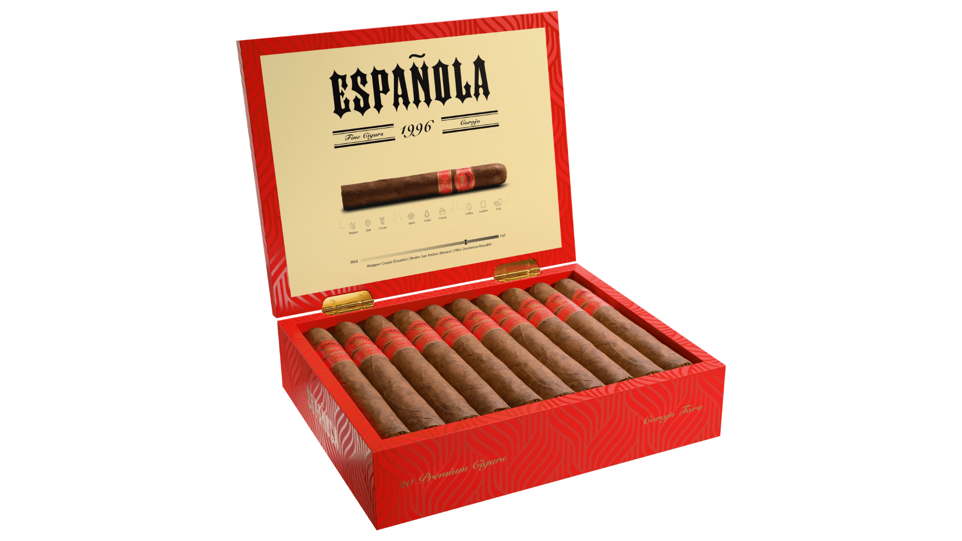 Handcrafted in the Dominican Republic, the Española Corojo features a rich, authentic Corojo wrapper and delivers a medium-to-full-bodied profile that’s both complex and seductively smooth. Notes of warm spice, cedar, roasted nuts, and a touch of natural sweetness balance perfectly for a refined yet bold smoking experience.