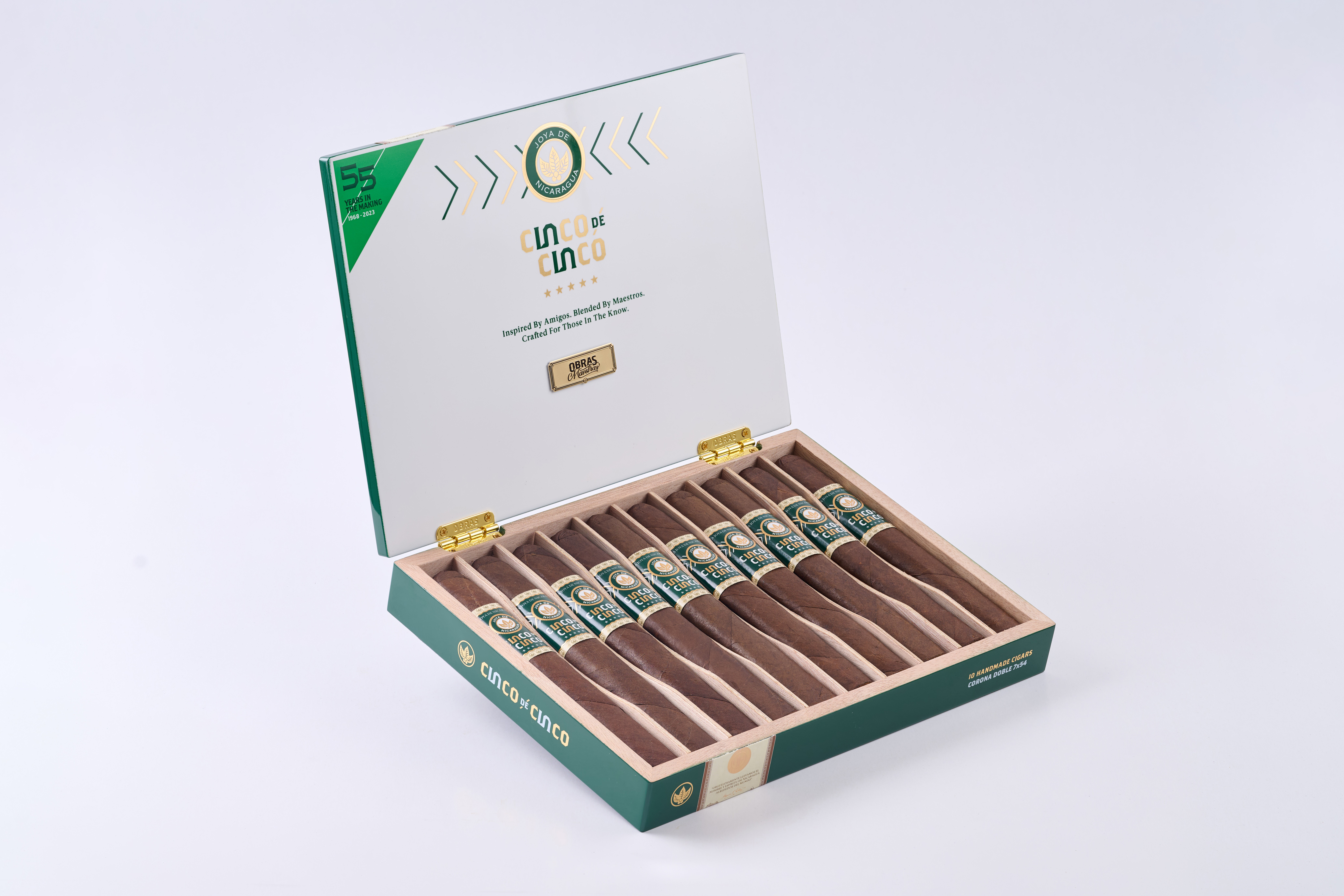 In 2023, as Joya de Nicaragua celebrated its 55th anniversary, the company introduced Cinco de Cinco. The cigar was named Cinco de Cinco, Spanish for “Five out of Five”, as it incorporates the tobaccos that visitors at their factory consistently rated as the very best. In other words, it is a true 5/5 recipe. Now, Joya de Nicaragua is announcing the introduction of Cinco de Cinco Corona Doble (7 x 54), originally a non-US exclusive vitola that will now be available in the United States market.