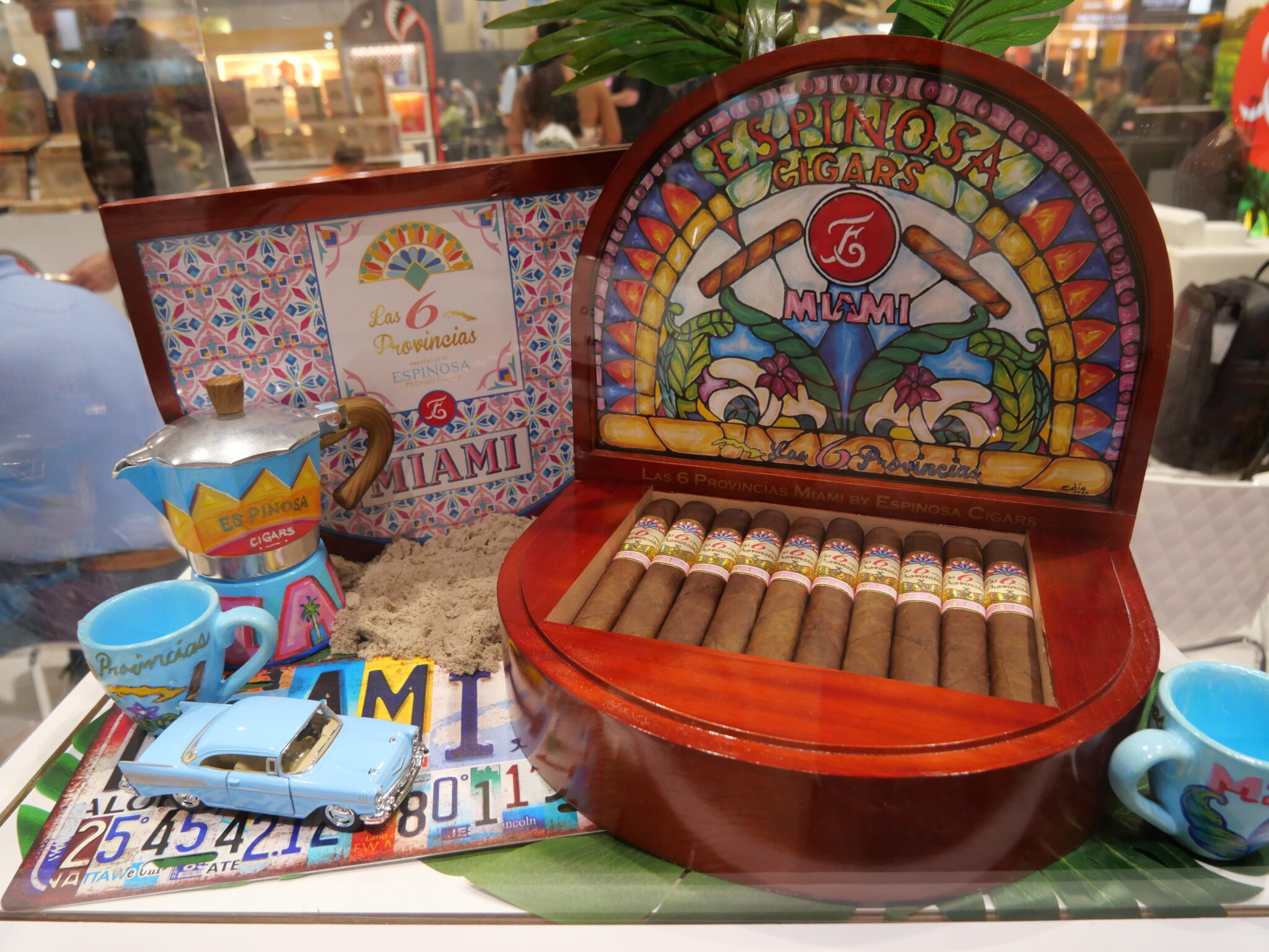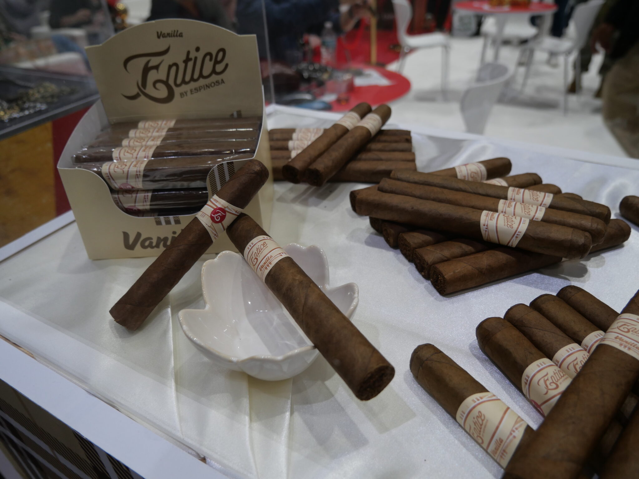 Espinosa was also showing their new infused cigar called Entice. It is available in a Lonsdale Box-Press (6 x 44), Robusto Box-Press (5 x 50), and Toro Box-Press (6 x 50). The line will be packaged in 25-count boxes, with suggested retail pricing set at $8.00 per cigar for the Lonsdale ($198 per box), $8.25 per cigar for the Robusto ($206 per box), and $8.50 per cigar for the Toro ($212 per box).