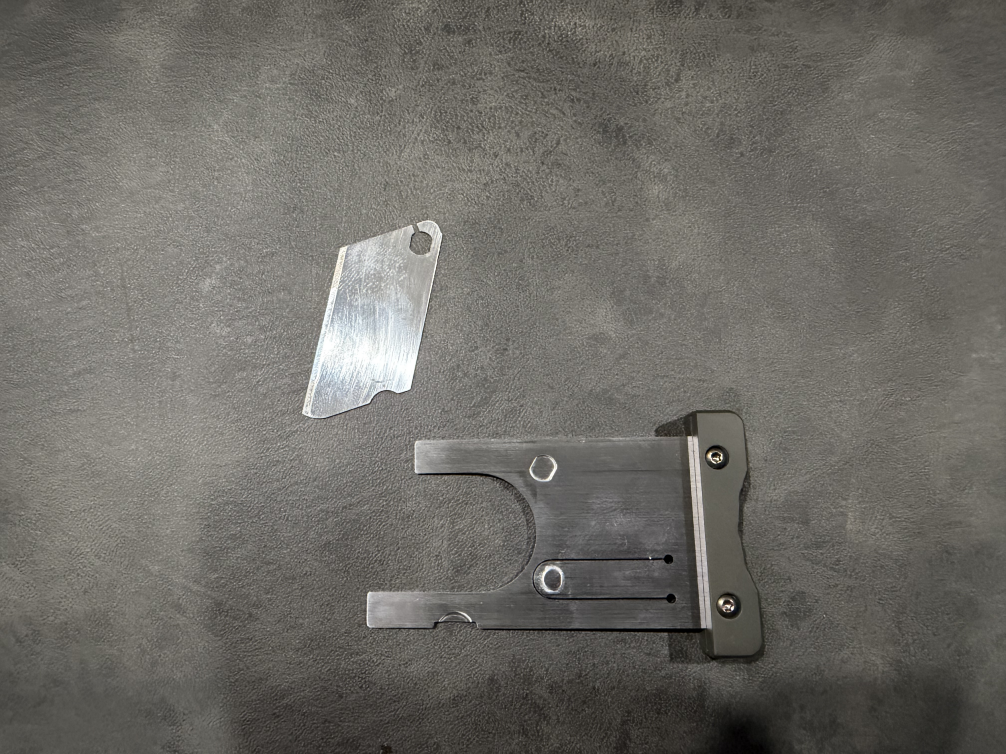 The blade itself is somewhat thin but from my use that doesn’t seem to be an issue anywhere. The blade is made from 420 stainless steel, with the outer body being stainless as well. The blade can be removed to be changed out during the life of the cutter, something you do not see very often. It is also very easy to remove by simply pushing down on the rectangular cut out on the blade holder. This presses a spring steel piece in and unlocks the blade holder from the body. The blade might fall out as there is nothing that locks it in once the entire blade frame is removed from the body. It is only held in place by two small tabs on the blade holder. It is pretty easy to figure out the correct orientation as it will only fit one way.