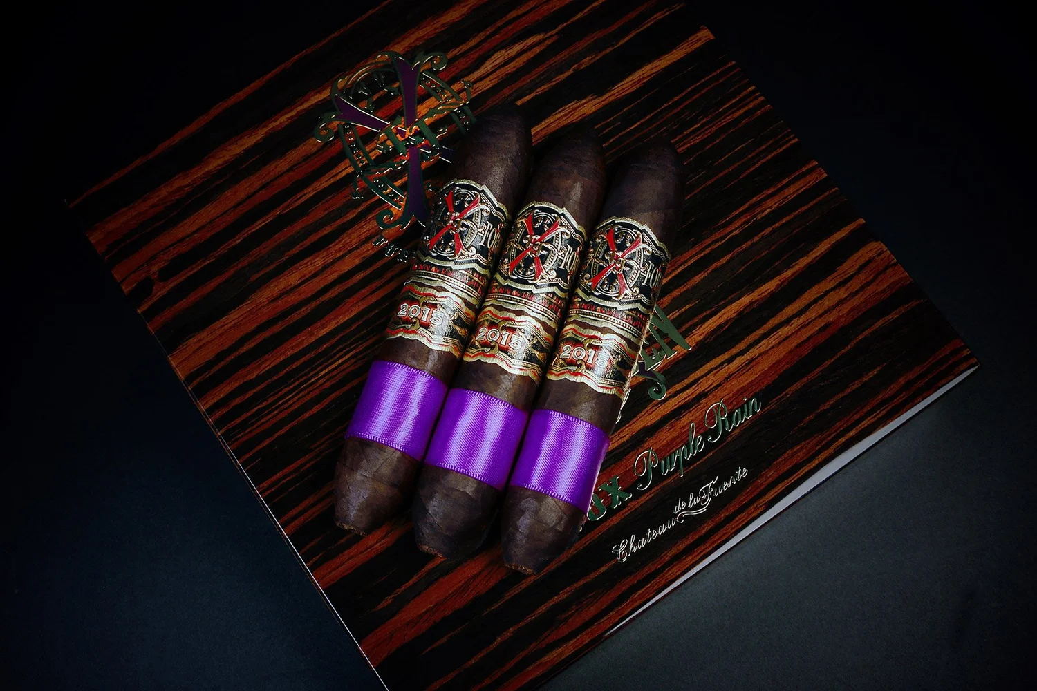 The new Fuente Fuente OpusX Serie “Heaven and Earth” Purple Rain Diademas Selection—Diademas 54, 56, and 60—will be released toward the end of 2026. In addition, the 2026 Limited Edition OpusX Purple Rain lighters, cutters, and humidors will be released in the summer and fall. The 2026 Limited Edition OpusX Purple Rain “Big Purple Dream” humidors were initially released in December 2025, with a second batch scheduled for December 2026.