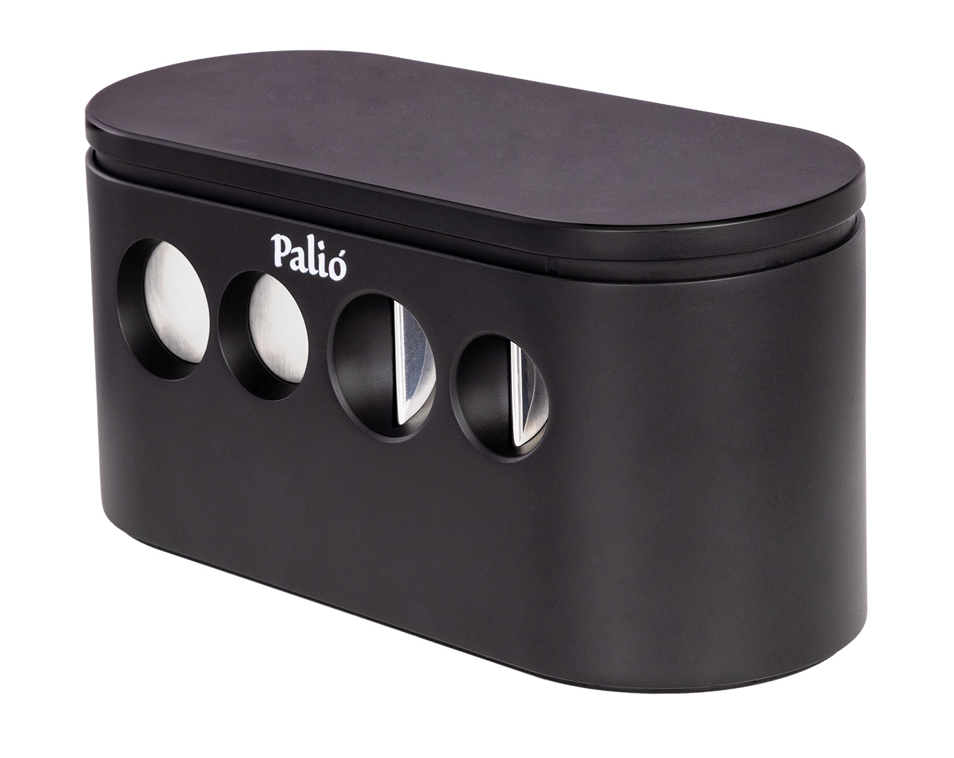 Echoing the timeless silhouette of the original Palió cutter, the Quad Tabletop Cutter redefines convenience and versatility with four integrated cutting options positioned along the front of the unit. Cigar enthusiasts have the choice of two straight cuts (52 & 60 ring-gauge) and two V-cuts (52 & 60-ring gauge), engineered to accommodate cigars up to 64-ring gauge.