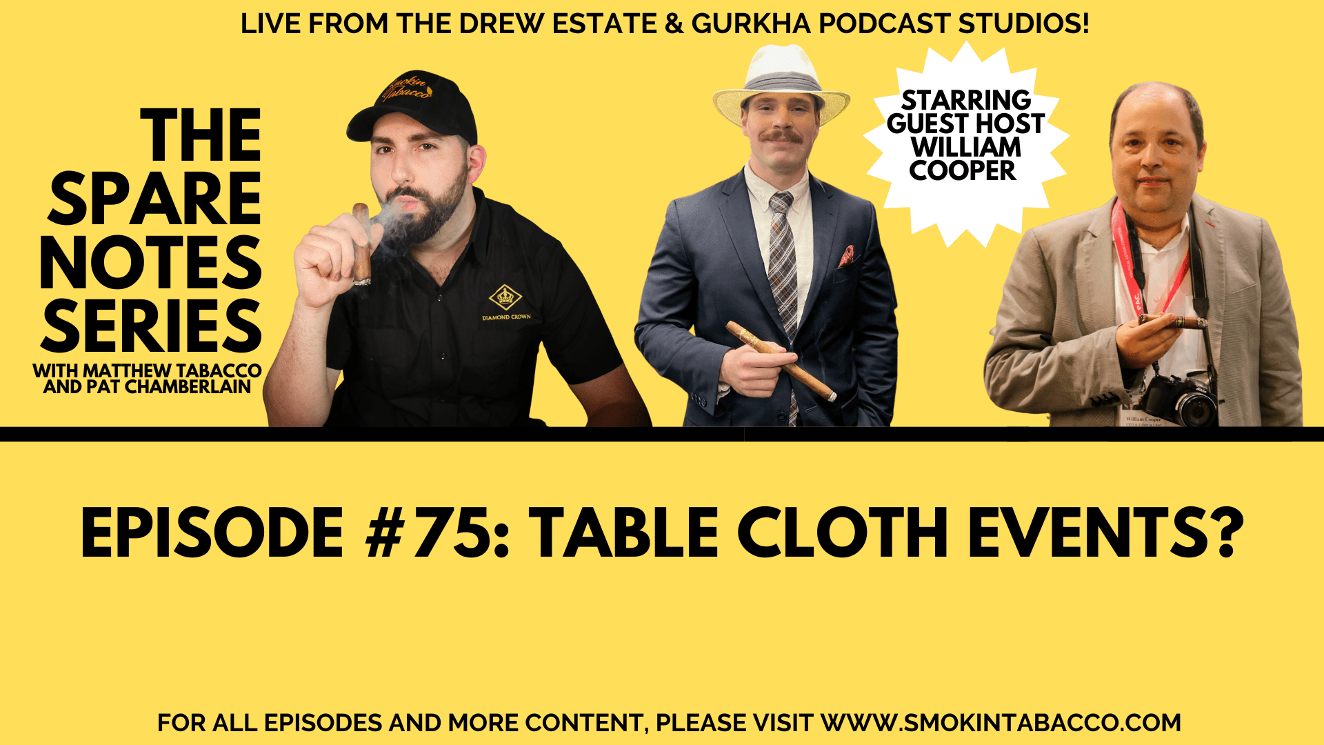 Brought to you by Drew Estate: On this episode of the Spare Notes Series, Matt, Pat and Coop talk about the infamous “table cloth events” that take place in stores across America and what the gang feels is wrong with it and how it can be improved for everyone’s benefit.